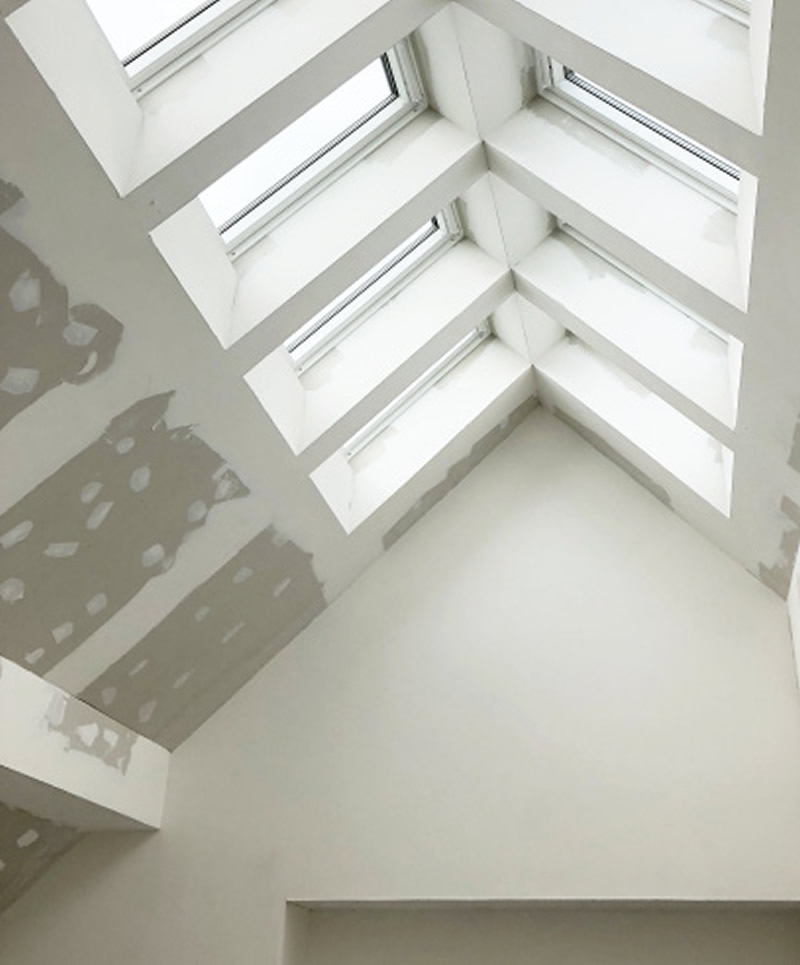 Zu unseren Leistungen gehören das Herstellen von Leichtbauwänden, abgehängte Decken- und Fußbodensysteme, mit denen in kürzester Zeit individuelle Raumkonzepte umgesetzt werden können. Gerade im Bereich von Bestandsgebäuden können so Anforderungen an den Schall-, Wärme- und Brandschutz ohne hohe Lasten durch Massivteile umgesetzt werden.